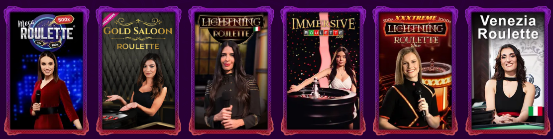 - Venezia Roulette – ruleta en vivo con ambientación italiana, dirigida por crupieres nativos.