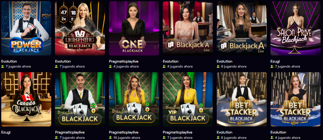 - Mesas regionales/temáticas: Brazilian Blackjack, Brazilian VIP Blackjack, Canada Blackjack.