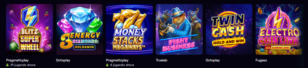 La biblioteca es amplia y actual: más de 8 000 títulos en múltiples categorías y proveedores de primer nivel, por lo que puedes cubrir desde slots rápidos hasta mesas en vivo y apuestas deportivas.