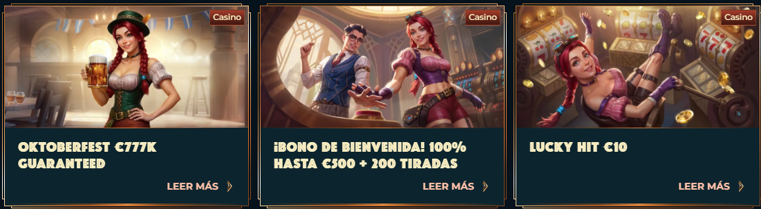 Si te importa más la variedad y los bonos, sí puede ser atractivo: catálogo amplio (≈3.000 juegos), bienvenida 100% hasta 500 € + 200 tiradas, pagos y retiros mínimos desde 10 € (BTC 30 €/60 €), múltiples métodos (tarjetas, e-wallets, cripto) y cobros tramitados en 1–3 días laborables; funciona bien en móvil. Ten en cuenta que algunos bonos no aceptan depósitos por Skrill/Neteller y que la oferta de jackpots progresivos puede ser limitada.