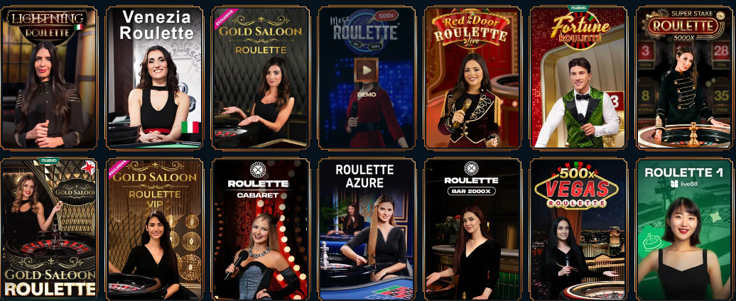 - Variedad de mesas: el lobby incluye ruleta junto a otros juegos de mesa (blackjack, baccarat, póker) y “game shows” en vivo.
