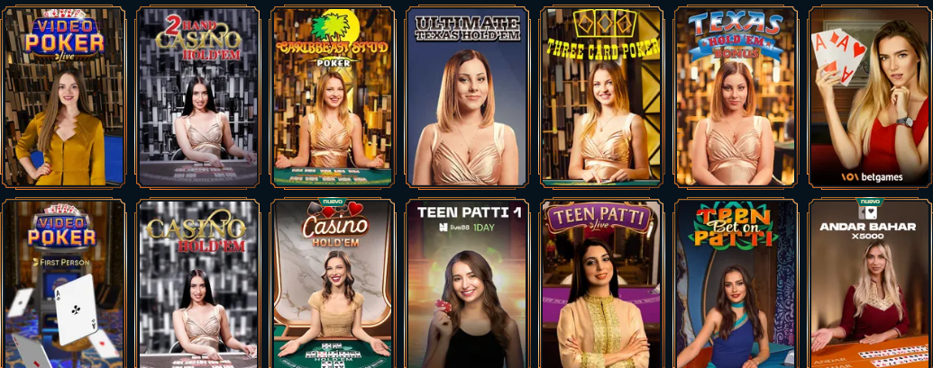 MonsterWin reúne póker RNG y mesas en vivo con crupieres profesionales dentro de su sección live, junto a ruleta, blackjack y game shows; los títulos de póker en vivo forman parte del catálogo de proveedores como Bombay Live, OnAir o Stakelogic.