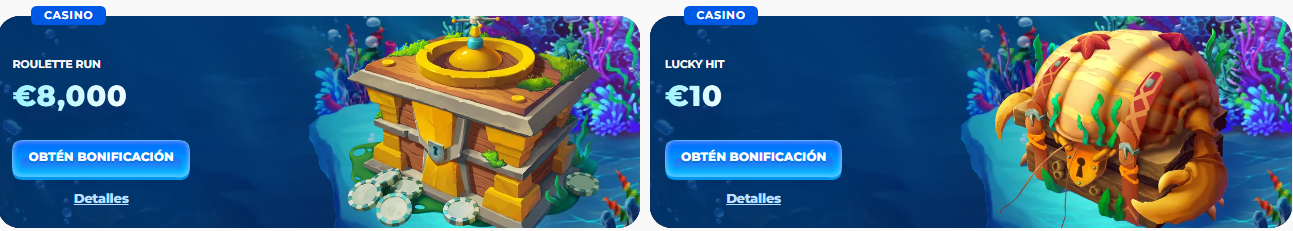 - “Lucky Hit”: 10 € de bonificación rápida al cumplir condiciones marcadas (normalmente en tragaperras seleccionadas).