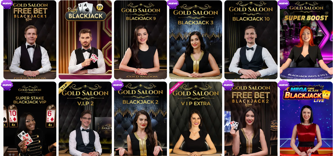 - Casino en vivo: Ruleta, Blackjack, Baccarat, Póker + Game Shows