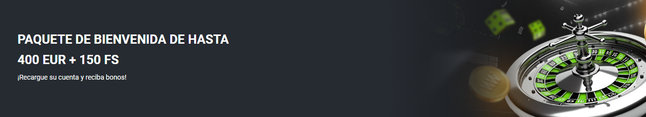 Paquete de bienvenida (casino): hasta 400 € + 150 FS.