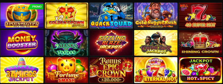 - Tragamonedas: clásicas, vídeo, Megaways, compra de bonus, botes diarios y jackpots progresivos.